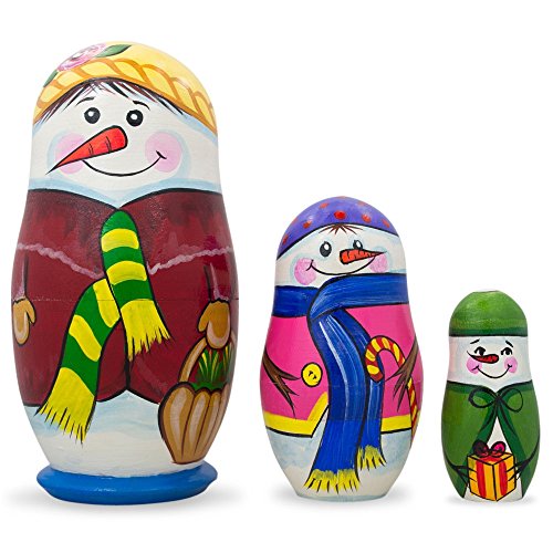 -. Title : 4.25" Set of 3 Snowman Family Wooden Nesting Dolls