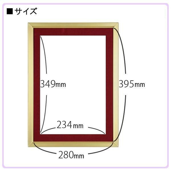 OA賞状用紙サイズの、壁掛け専用フレームです。 製造国:日本 素材・材質:フレーム:アルミ、前面:透明シート(PET)、台紙 重量:約340g 仕様:規格:OA賞状B4(台紙窓サイズ:234mm×349mm/紙サイズ:280mm×395mmまで)ゴールド枠:エンジ台紙シルバー枠:紺台紙壁掛け専用 付属品:紐 ※サプライヤー直送品 ご注文後9~12営業日後の出荷となります【商品名】A.P.J. Eフレーム(賞状サイズ) OA賞状額B4(234×349mm) ゴールド・1000008570