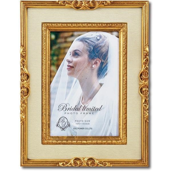 | 優雅な装飾の入った細いフレームが写真を囲い、光沢のある布を貼ったモールディング付マットを使用した、上品で高級感のあるフォトフレームです。 |