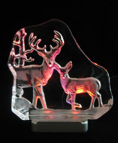-. Title : Engraved Lead Crystal -- Deer/Fawn