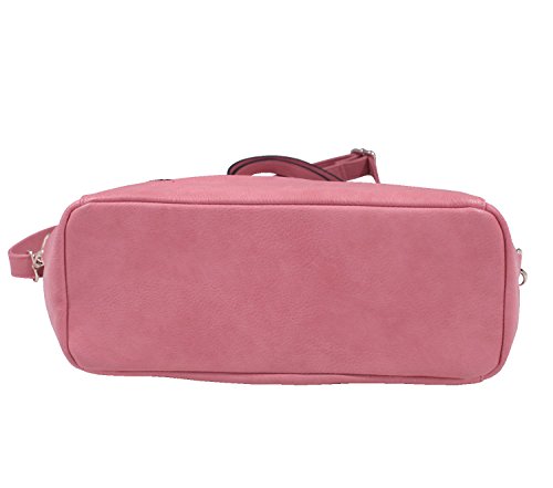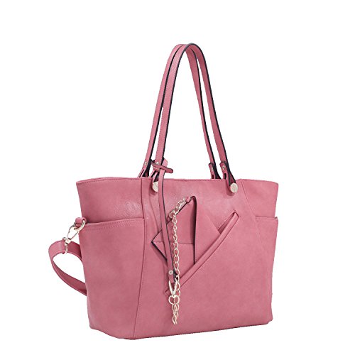 This exterior designer handbags features two side slip in pockets on each side of purse, one slanted slip in pocket and a chained coin purse the chain is removable giving you the freedom of wearing it with your tote handbag or not. The interior of this unique women crossbody bag features a mid-zippered compartment, on one side has zippered pocket, and on the other side it includes slip in pocket. This tote bag is a big spacious multi pocket purse.