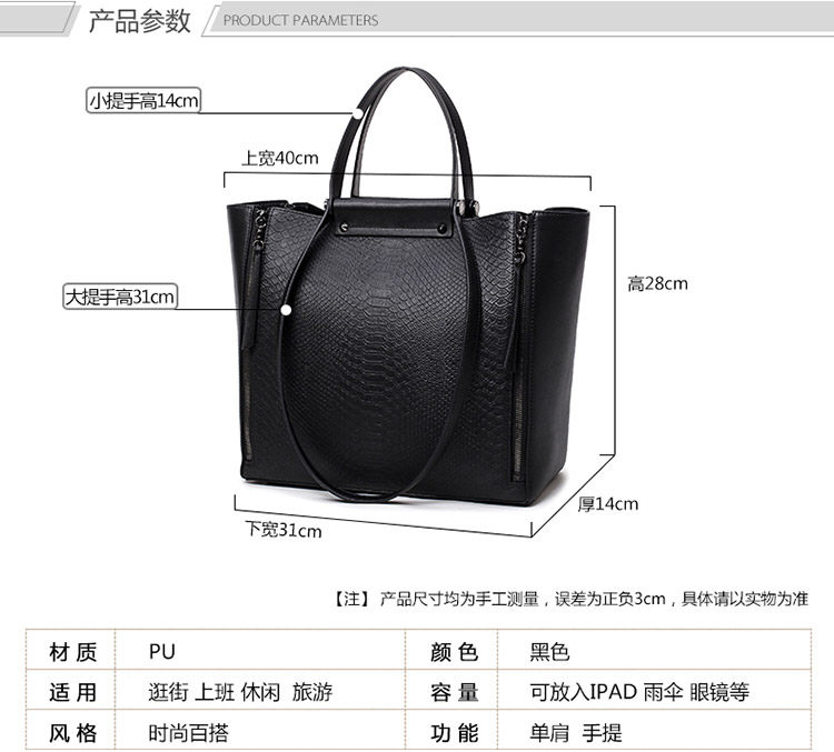 亲们  这款包包是超值款哦, 很大牌,欧美风格哦,  够大够档次,文件夹 A4纸都没有问哦。新款预售,喜欢的赶紧下手哦,早买早发货。