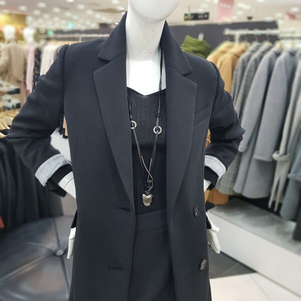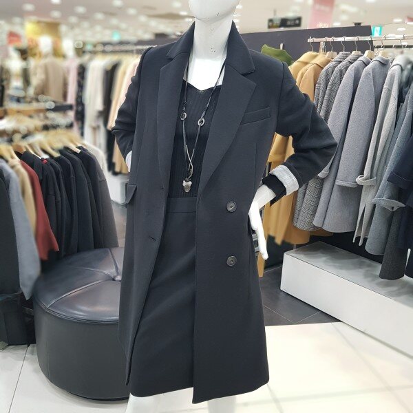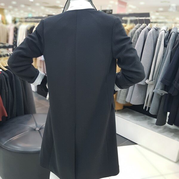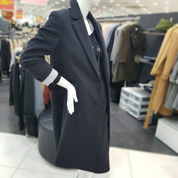 블랙컬러의 싱글 롱 코트 입니다일자핏감의 세련미가 더하구요~간절기 착용하기 좋은 두께감으로 신축성도 뛰어납니다~