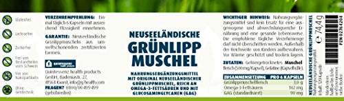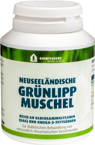 -. Binding : Badartikel -. Brand : Quintessenz Health Products GmbH -. EAN : 4260283640164 -. Feature : Knorpelbildung unterstützen - beweglich bleiben / Der Gehalt an GAG ist standardisiert auf 15 mg pro Kapsel! / 500 mg/Kapsel / 120 Kapseln / Zufuhrempfehlung 6 Kapseln pro Tag -. Label : QUINTESSENZ HEALTH PRODUCTS GMBH -. LegalDisclaimer : WICHTIGER HINWEIS: Nahrungsergänzungsmittel sind kein Ersatz für eine ausgewogene und abwechslungsreiche Ernährung und eine gesunde Lebensweise. Die empfohlene tägliche Verzehrmenge darf nicht überschritten werden. Außerhalb der Reichweite von Kindern aufbewahren. Vor Wärmegeschützt und trocken lagern. Nicht geeignet bei Allergiengegen Schalentiere. -. Manufacturer : QUINTESSENZ HEALTH PRODUCTS GMBH -. PackageQuantity : 1 -. ProductGroup : Drogerie & Körperpflege -. ProductTypeName : HEALTH_PERSONAL_CARE -. Publisher : QUINTESSENZ HEALTH PRODUCTS GMBH -. Studio : QUINTESSENZ HEALTH PRODUCTS GMBH -. Title : NEUSEELÄNDISCHE GRÜNLIPPMUSCHEL 120 KAPSELN VERSANDKOSTENFREI