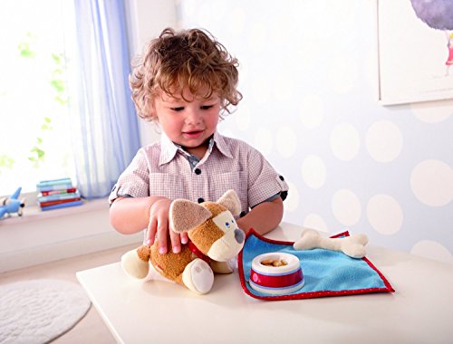 - Feature : Each time he is given a delicious bone, Leo is simply happy / He loves having a nap on his soft blanket too / Set includes dog, blanket, bowl and bone / Made of velour, polyester, melamine bowl / Recommended for ages 1 and up