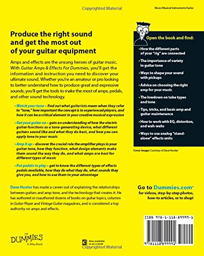 Amps and effects are the unsung heroes of guitar music. While most people recognize the more psychedelic effects, many don't realize that effects are often responsible for the unique quality of tone that can become a musician's trademark. Certain effects work on the volume or signal level, others work on the environment, and still others work on the bass and treble content. Guitar Amps & Effects For Dummies covers them all, and shows how effects can not only add something extra, but also "fix" problematic areas. Topics include: