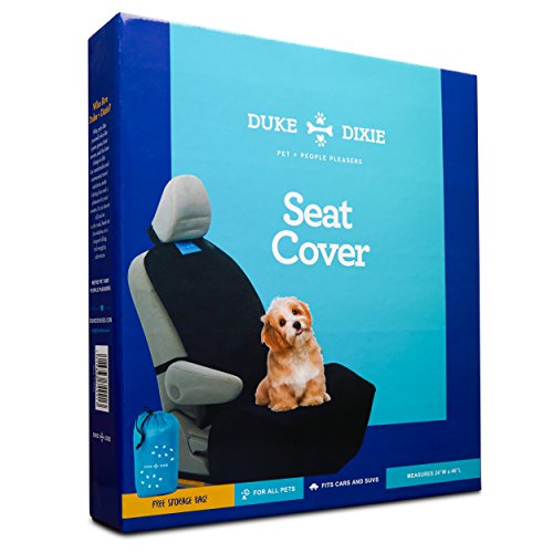 Studio : Duke Dixie Publisher : Duke Dixie Binding : Misc. Product Description Stop using old blankets and towels as a seat cover for your pets and give your pooch a proper place to sit as they ride in the front seat. Provide protection and comfort for you and your pet with these front seat covers by Duke Dixie, the pet and people pleasers. KEY FEATURES: ? Triple Layer Protection: - Black Rubber Mesh - Waterproof PVC - Quilted Polyester ? Double Anti-Slip Back ? Bonus Storage Tote ? Gift Packaging Unlike typical pet seat covers that only come with buckles that attach to the back of the head rest this one comes equipped with an additional buckle that reinforces the cover to the middle of the seat to keep it flat and secure. Adjust the straps to make a custom fit for your front seat. A durable quilted material provides cozy padding and comfort for your pup while protecting your upholstery from spills, messes, rips, tears, scratches and odors. Drive worry free knowing that your pet is snug and safe. Extra padding allows your pup or kitty to ride without slipping and falling. A non-slip back prevents slipping and sliding while a waterproof material shields liquids and makes it easy to clean. INCLUDES CARRYING TOTE This seat cover comes equipped with a useful carrying tote that can also be used for storage and travel. Use it to store other pet accessories and supplies. It makes traveling with your animal friend easier and convenient. Keep your cover stowed away in the trunk of your car in this convenient bag. MULTI-USE: This cover isn't just for dogs, it provides protection against a vast amount of things. Perfect for beach goers, construction workers, painters, and even parents! At Duke Dixie we are pet and people pleasers. That's why all our products are made with you and your pet in mind to ensure the highest quality, superior comfort, and long lasting durability. If you are unsatisfied for any reason at all, please let us know and we will resolve it. 0