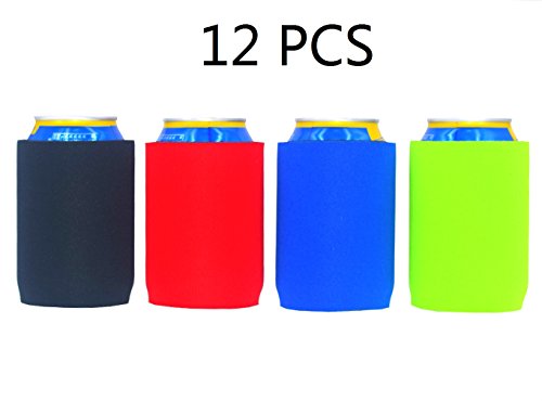 E- Living Glued Bottom Neoprene Can Sleeve Holder Coolie Cover for Cola / Beer / Soda - 12 Pack (6 Colors) (Party Pack)