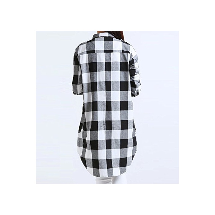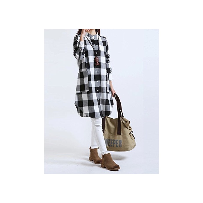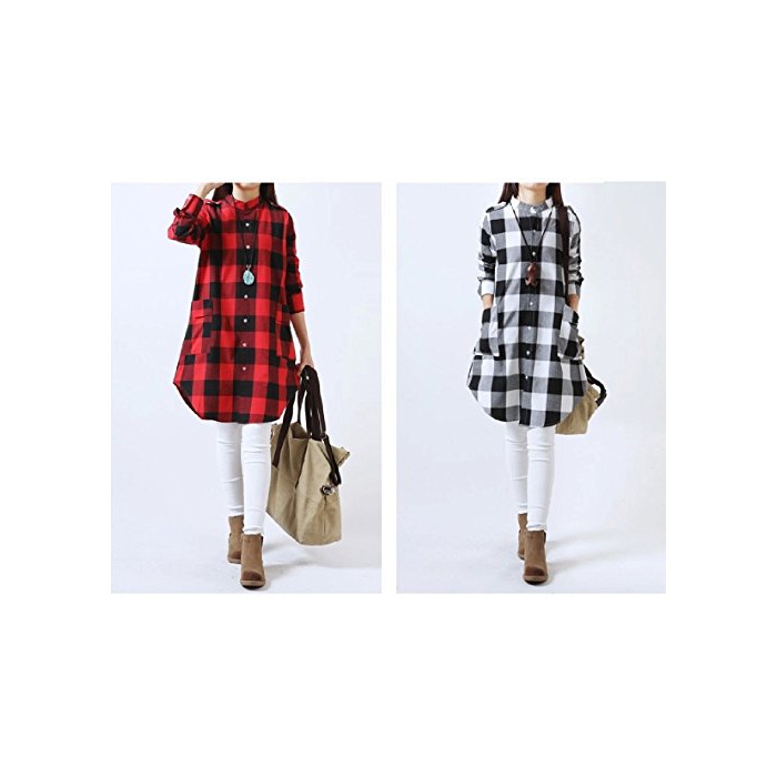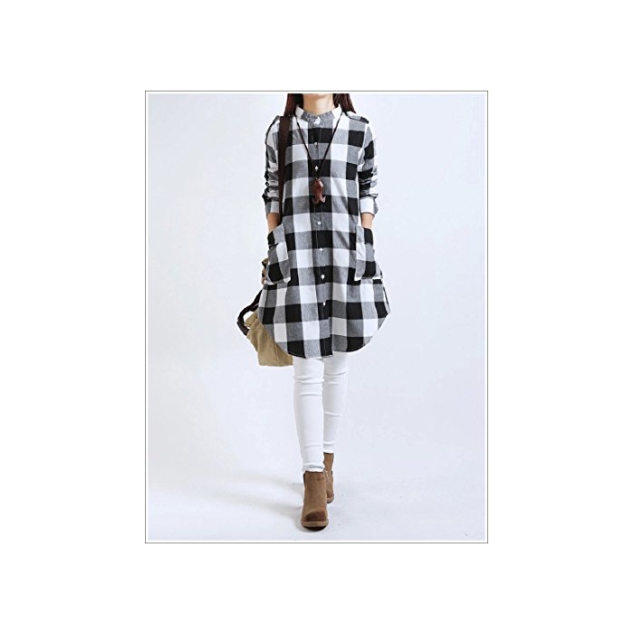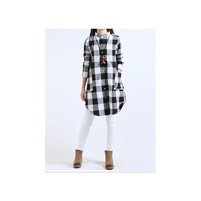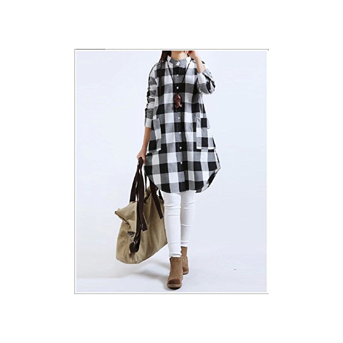 Kazan kazan 체크 A 라인 긴 소매 원피스 튜닉 체형 커버