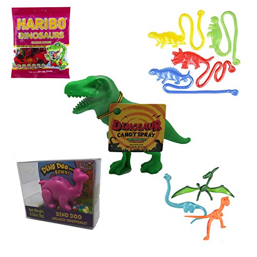 -. Title : Dinosaur Toys Bundle T Rex Candy Spray, Brontosaurus Dino Doo (Poops), Dinosaur Gummi Candy, 3 Bendable Dinosaurs & 12 Sticky Dinosaurs