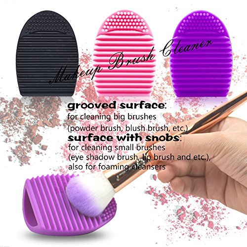 Useful tool to clean various of your makeup brushes. The tiny granules are used for cleaning small brushes and the stripes are designed for bigger makeup brushes.