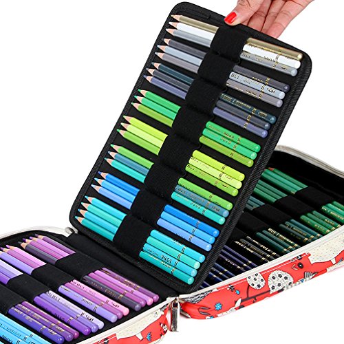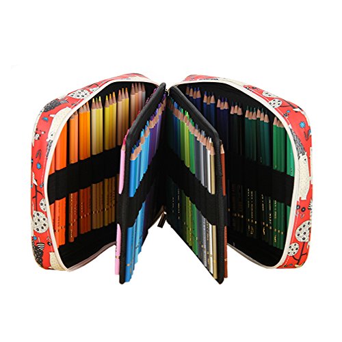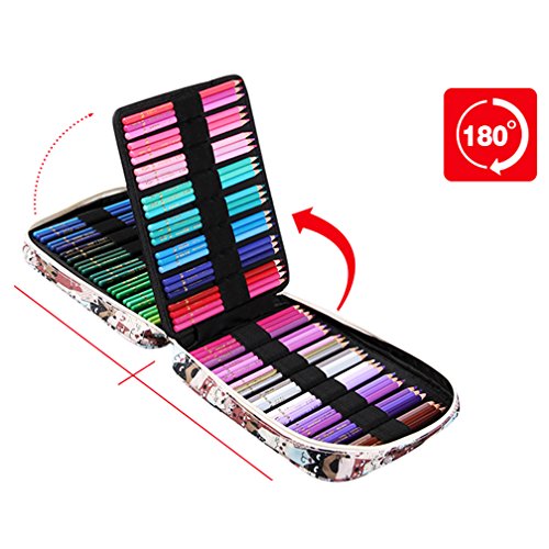 - This Pencil Case that has a multi-layer compartments and large capacity that can store up to 150 colored pencils, the case measurement is 27"(H) x 21"(W) x 6"(L), roomy slots, 1.2" wide, suitable for most pencils even eraser and sharpener.