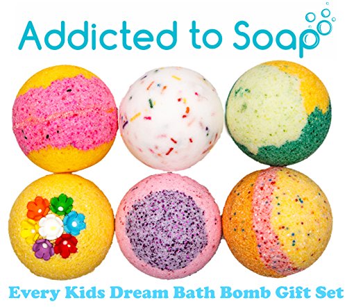 Addicted to Soap - 6 Bath Bomb Gift Set | Every Kids Dream - Watermelon Lemonade, Birthday Cake, Fairy Dust, Lemongrass, Fruit Loop, Jelly Donut