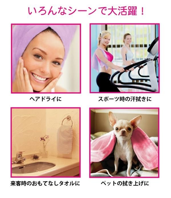 極細繊維のマイクロファイバーで多くの水分をすばやく吸収。ふわふわで柔らかく肌触りも抜群。