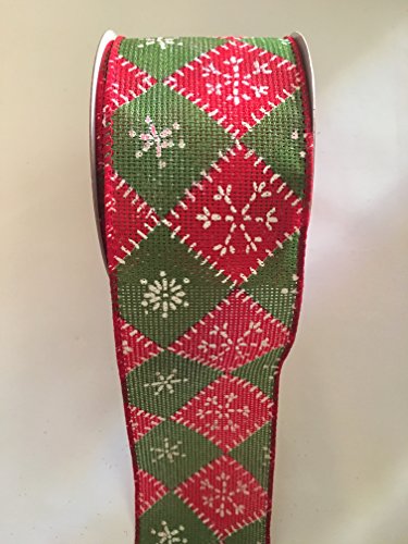 2.5" x 30 Ft Red and Green Diamond with Stitch Detail Wired Edge Ribbon