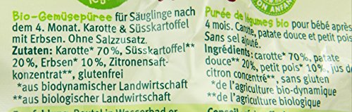 [홀레] Holle Pouchy Karotte und Süsskartoffel mit Erbsen, 12er Pack (12 x 0.107 kg)