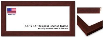 - Built to display business licenses and certificates measuring 8.5 x 3.5 inches. The Frame: Solid Wood Rich Mahohany Brown Finish
