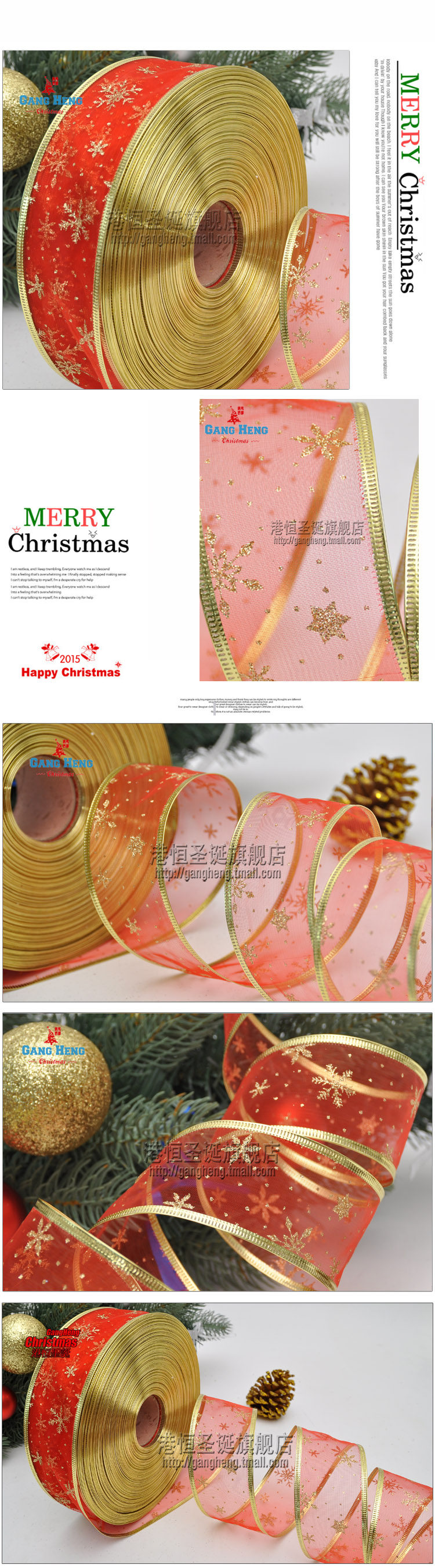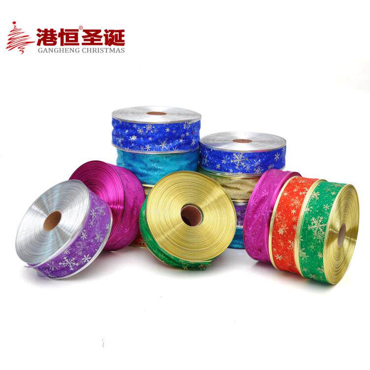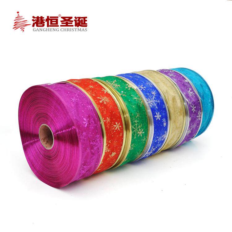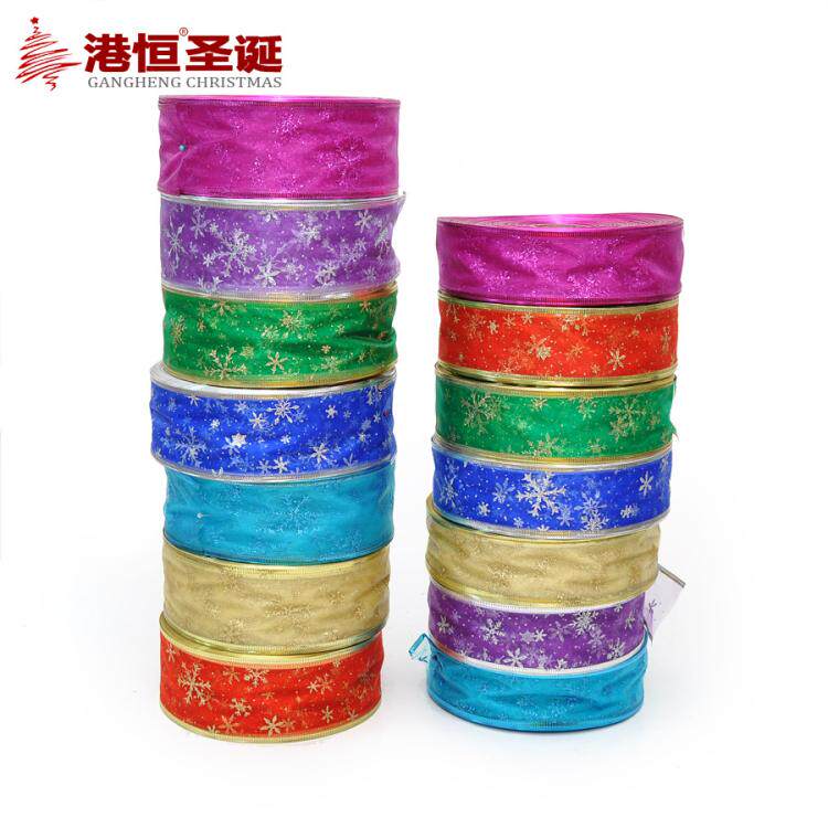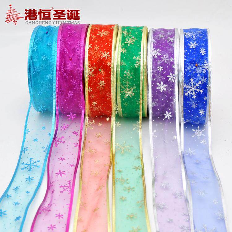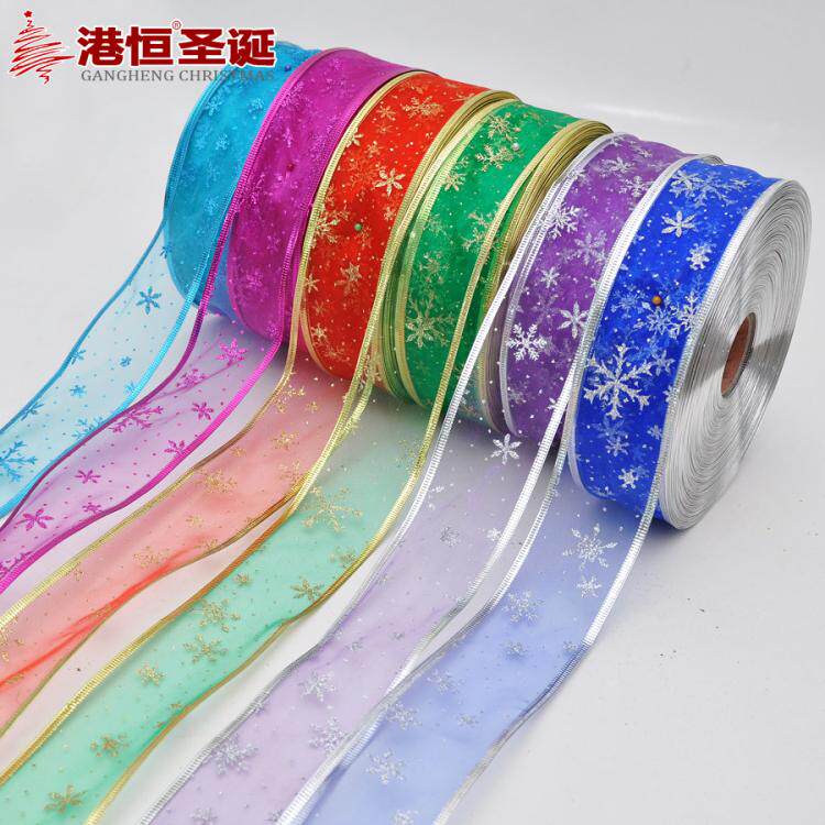 港恒圣诞树装饰200x6.3cm珍珠纱压边雪花图案圣诞彩织带/丝带 10g