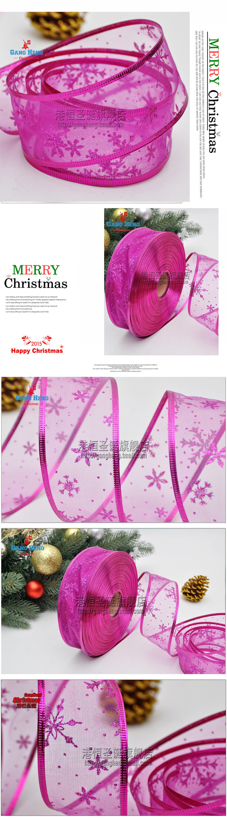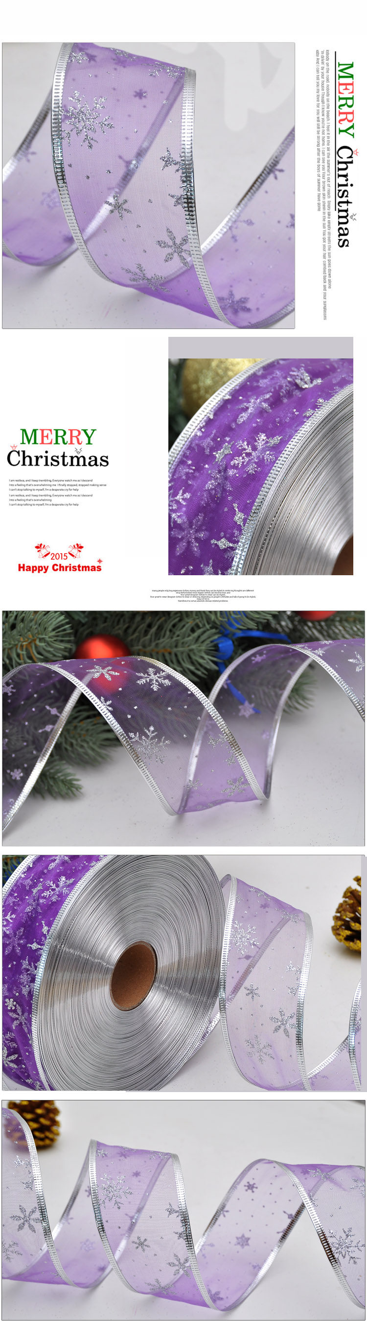 港恒圣诞节装饰 200x5cm葱粉珍珠纱雪花压边圣诞彩织带/丝带 10g