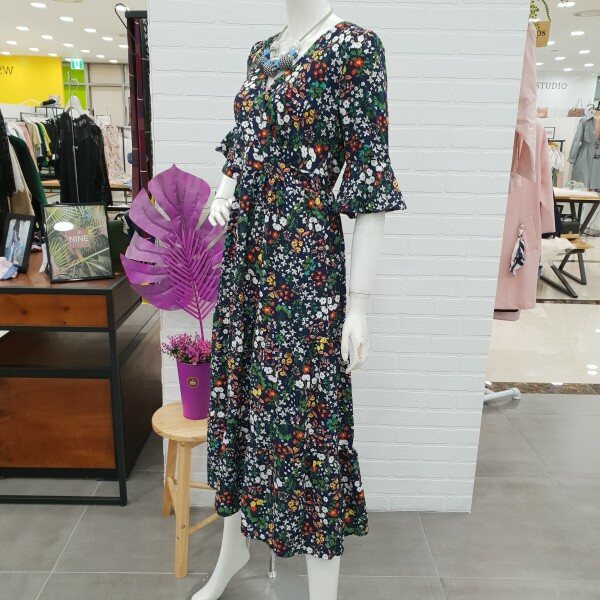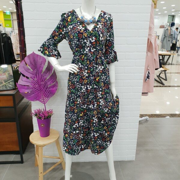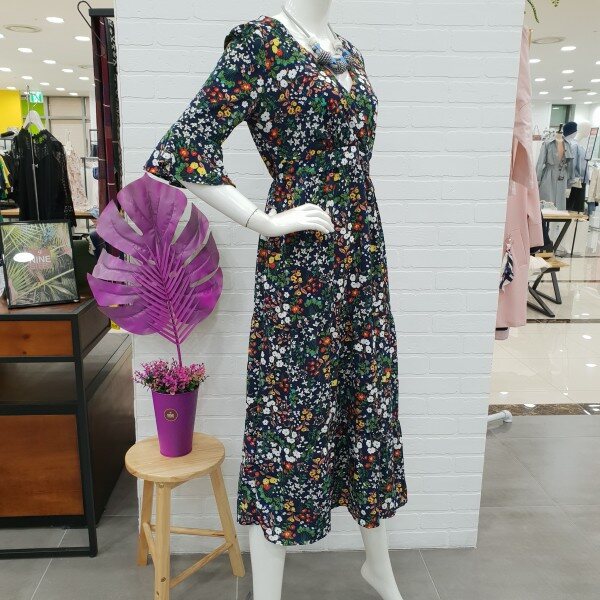 플라워~롱스타일의 캉캉원피스예요.플라워가 시원함과 화사함을 주니 여신같은 느낌을 주네요.랩스타일로 나와 네크라인도 야리야리해 보이며 V라인이 세련됨을 주는 스타일이예요.여름까지 시원하게 입기 좋으며 여행을 준비중이신 분한테도 권해드리고 싶은 원피스예요.