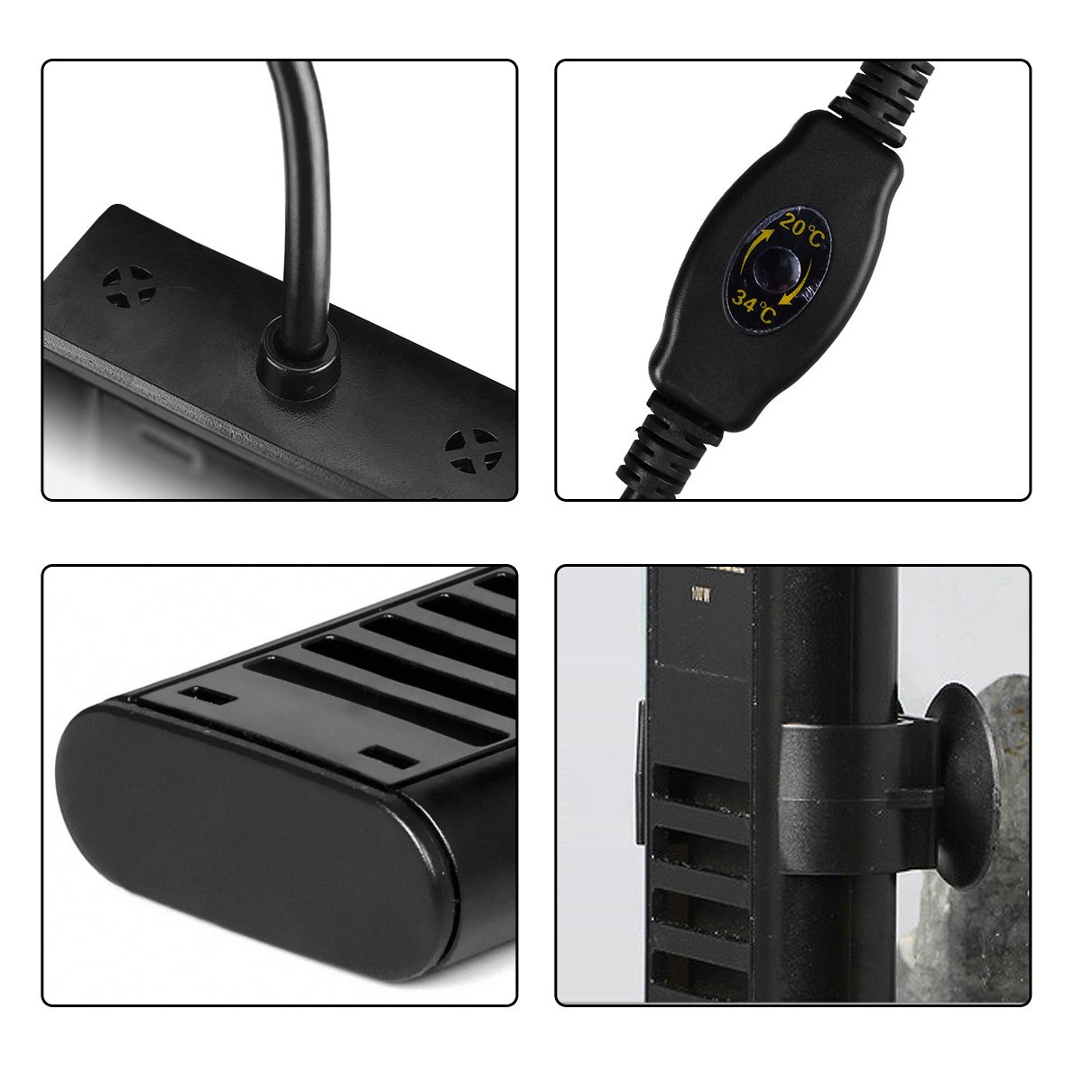 ● Excellent waterproof, high precision compact thermostat with kiss rubber, easy fixation on the outside of the aquarium.