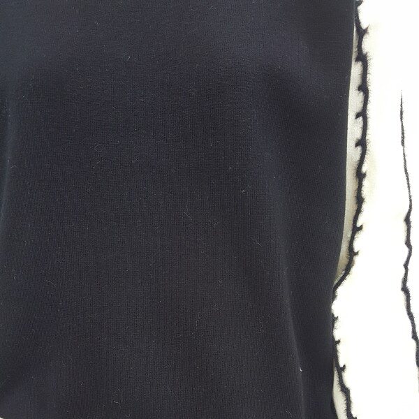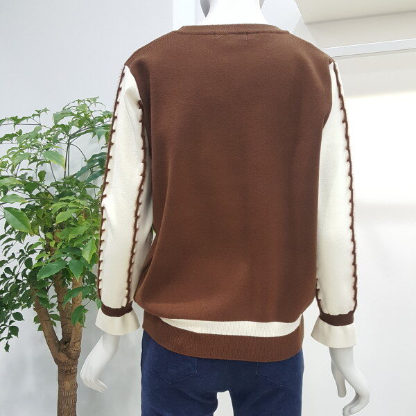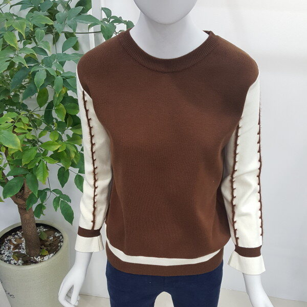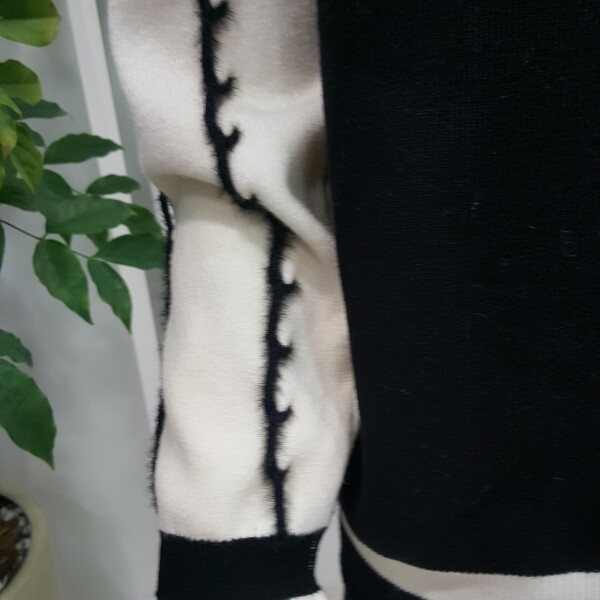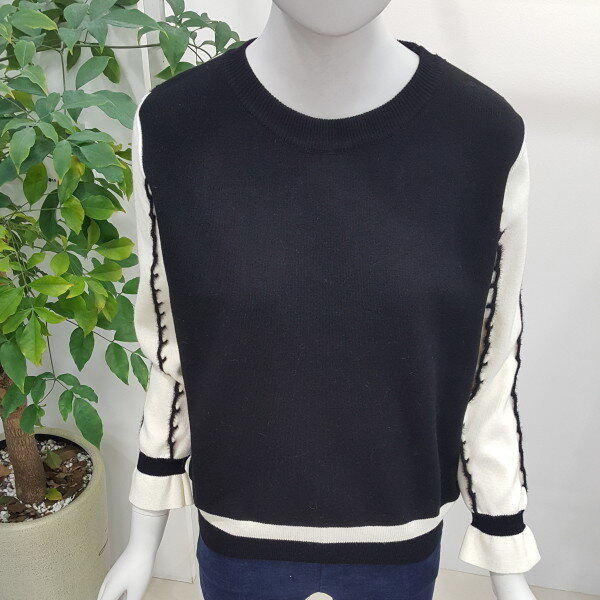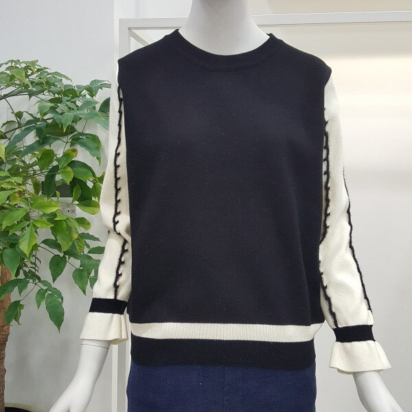부드러운 터치감에 블랙 화이트 배색의 깔끔하고 소매부분이 여성스러워 스커트와 매치하기 좋습니다