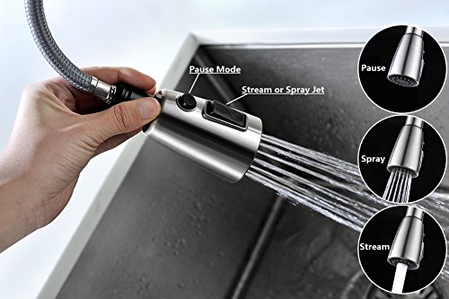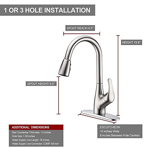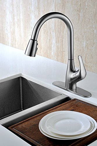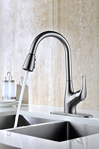Purelux Tulip Single Handle Pull Down Kitchen Sink Faucet With Deck Plate, Brushed Nickel Pull Out Kitchen Faucets with Sprayer High Arc Design