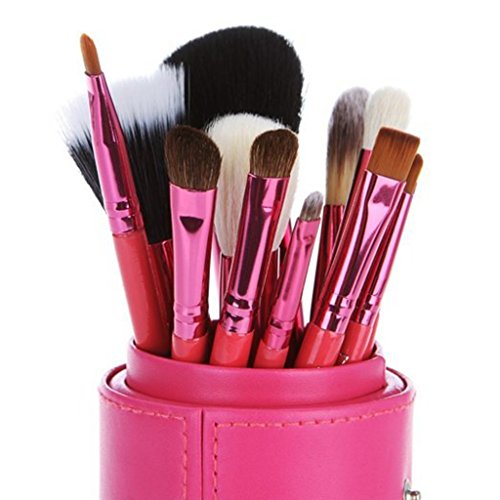 Mom's gifts easygogo 12pcs Makeup Brush Set Professional Face Cosmetic Brushes Kit Make up Tool with Cup Holder Case valentine day Gifts for Teen Girls (Rose)