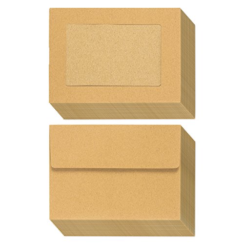 50-Pack Paper Picture Frames and Envelopes - Elegant DIY Kraft Paper Photo Mats - Perfect for Displaying and Sending Memorable Photos - Holds 4 x 6 Inches Inserts