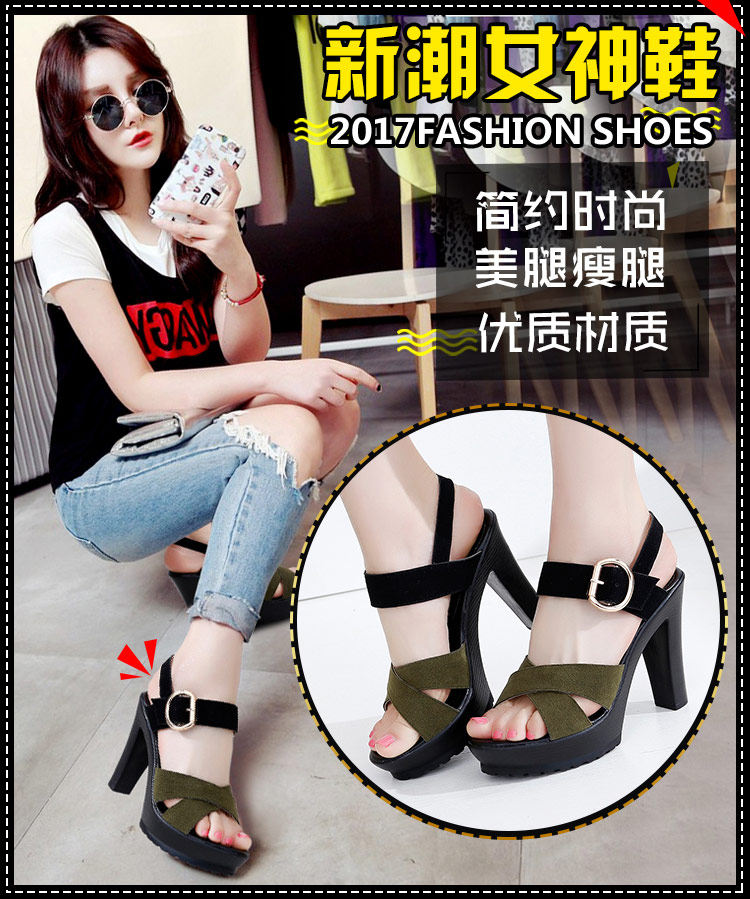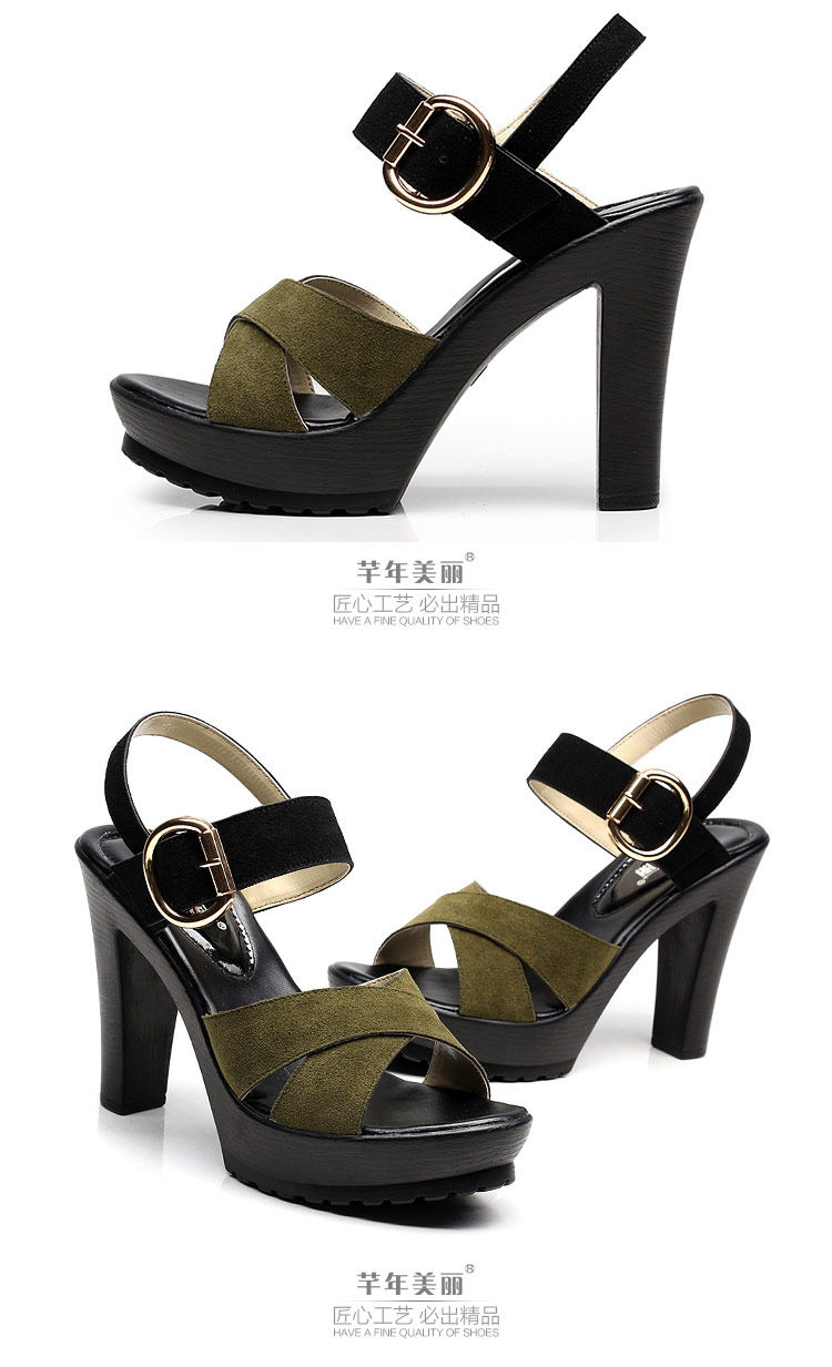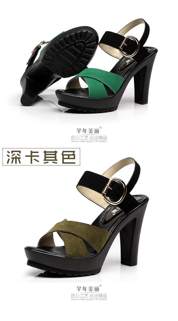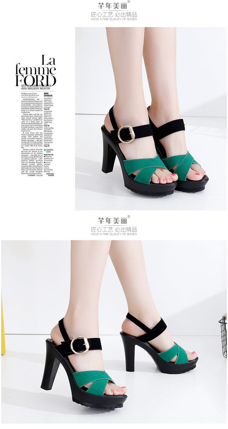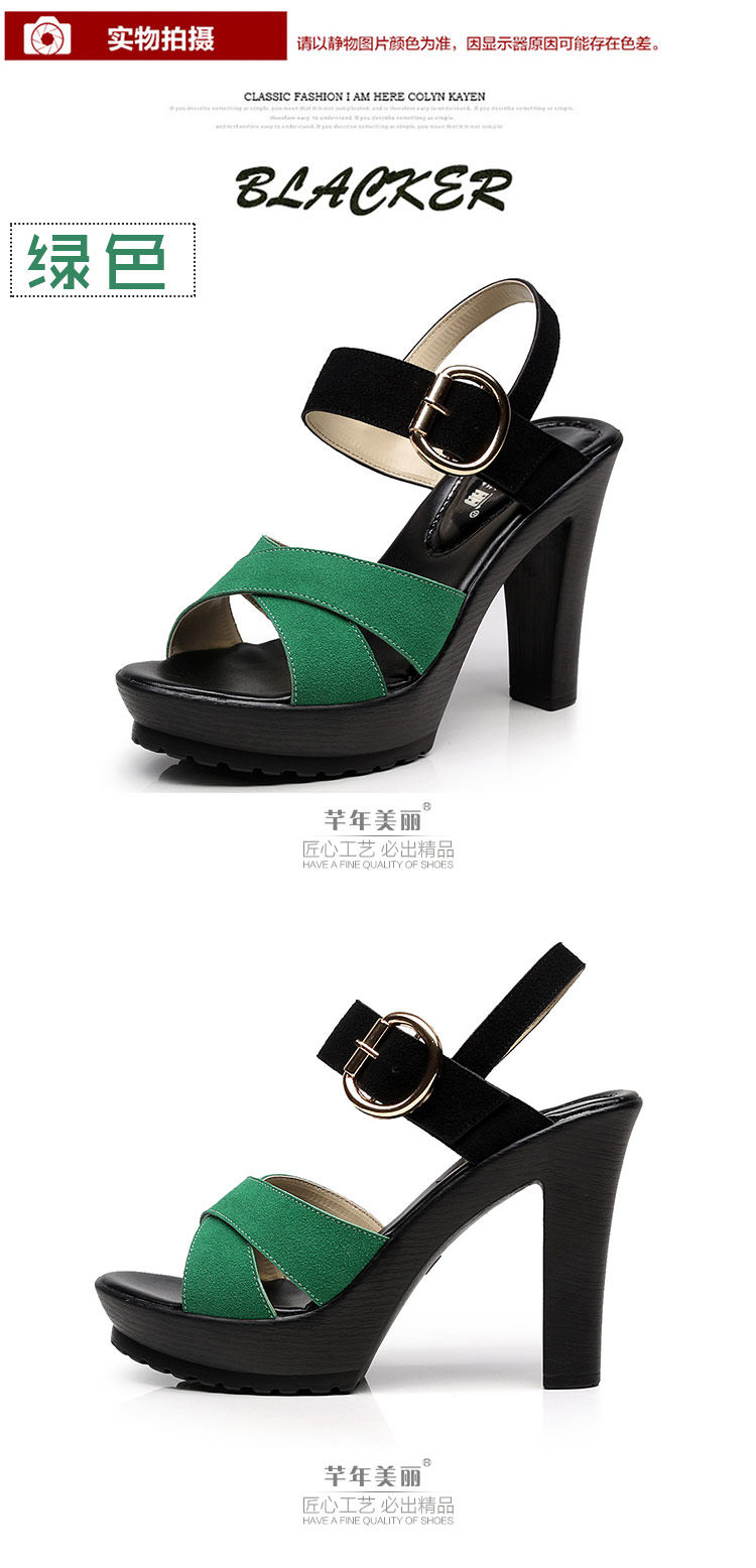- 流行元素: 交叉绑带 镂空 搭扣 浅口 松糕跟 粗跟 防水台 金属装饰 皮带扣 罗马风格