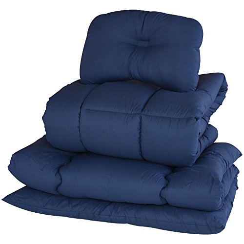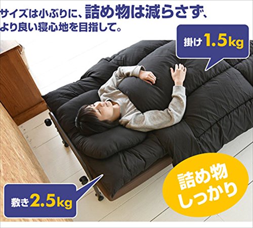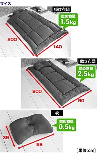 本体サイズ:掛け布団=たて200×よこ140cm、敷き布団=たて200×よこ90cm、枕=たて43×よこ63cm、収納ケース=幅100×奥行67×高さ35cm