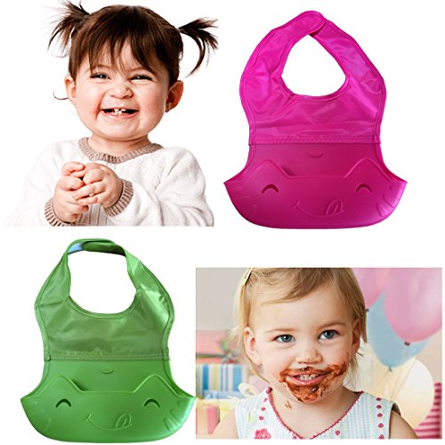 -. Feature : Built-in Crumb Catcher Pocket: This unique silicone bib has a clever, extra-large crumb catcher that catches bits of food before they hit the floor (or your baby's clothes). / Easy-Clean Silicone: No more laundering soiled bibs! Ours is made of soft, flexible, stain-resistant silicone that wipes clean easily after mealtime. It's even dishwasher-safe! / 100% Nontoxic: Food grade silicone. Free of BPA, phthalates, latex & lead. You can feel comfortable using this for your own baby / toddler or giving it as a gift. / Easy to Fasten: No more fussing with cumbersome silicone buttons-our comfy bib features a high-quality Velcro snap for easy fastening on wiggly babies. For ages 6 mos - 4 yrs. / Your Satisfaction Guaranteed: If you're not happy with this product for any reason, simply return it to us for a full, no-hassle refund.