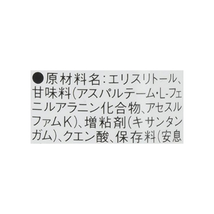 원재료 : 에리 소매치기 tall,감미료(아스 PAL《데무》L-회 닐 알라닌 화합물,assessment《루후무》K)고, 구연산,보존료(안식향산Na)고, 증점제(산탄검(Xanthan Gum))