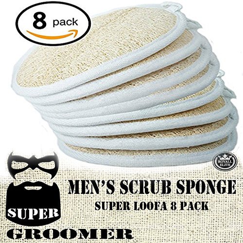 SUPER GROOMER MEN'S SCRUB SPONGE SUPER LOOFAH 8 PACK Men’s loofah sponge for shower bathing hygiene bath body wash