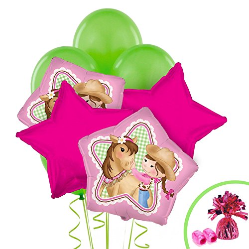 -. Feature : Includes (4) foil balloons, (6) latex balloons, (2) rolls of curling ribbon, and (1) balloon weight. / Add matching tableware, favors, accessories, or a party kit bundle to complete your western birthday party!