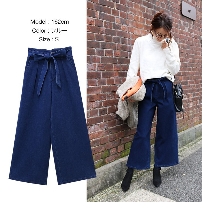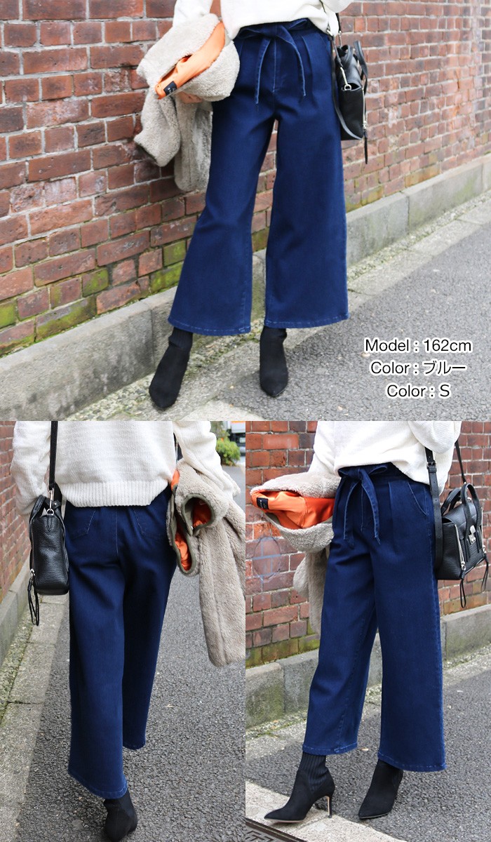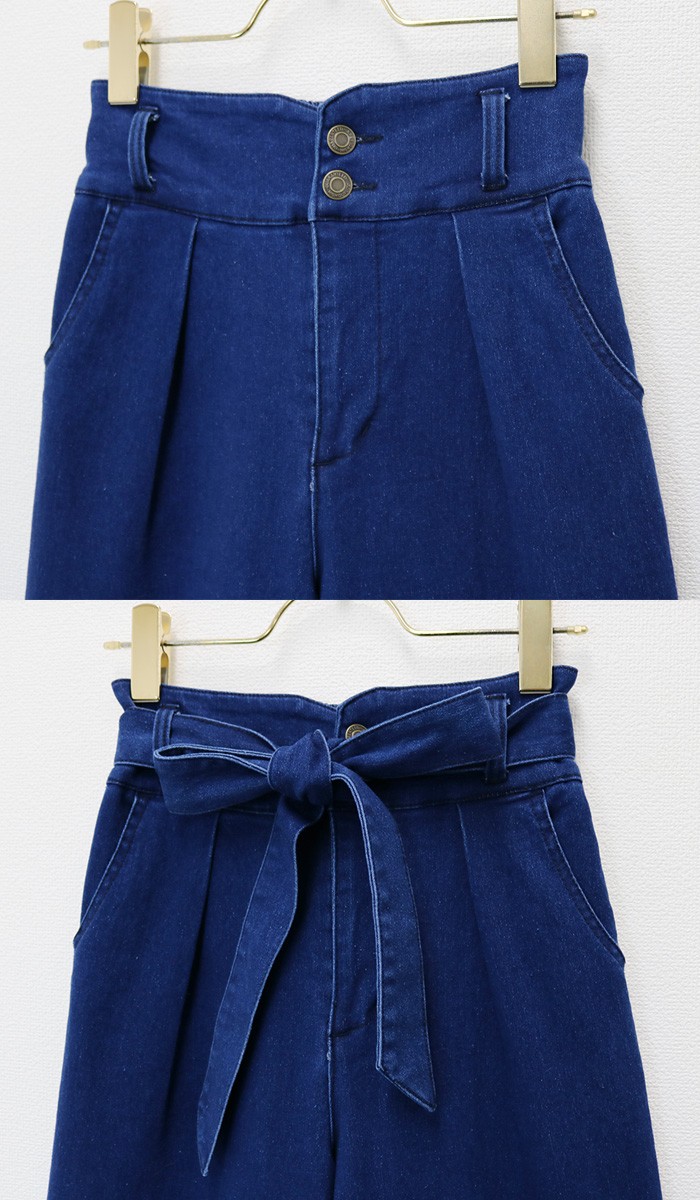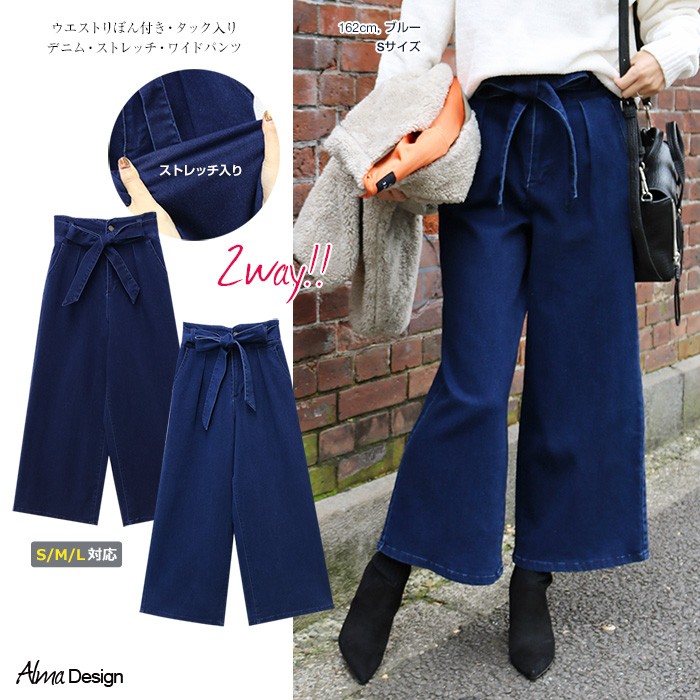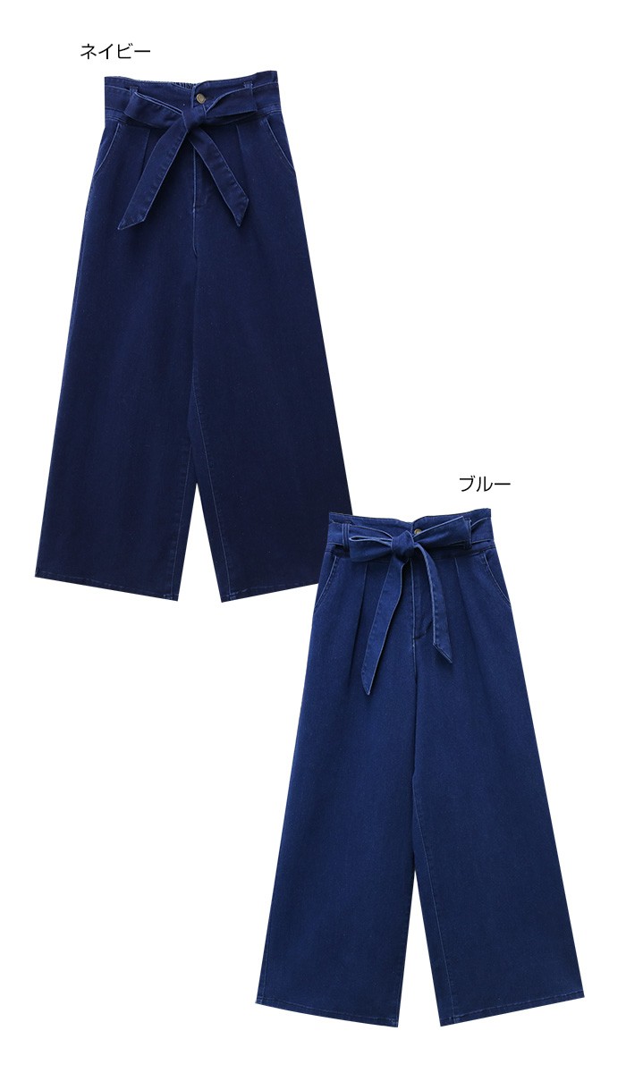 ウエストりぼん付きで2wayではけるデニム・ワイドパンツ