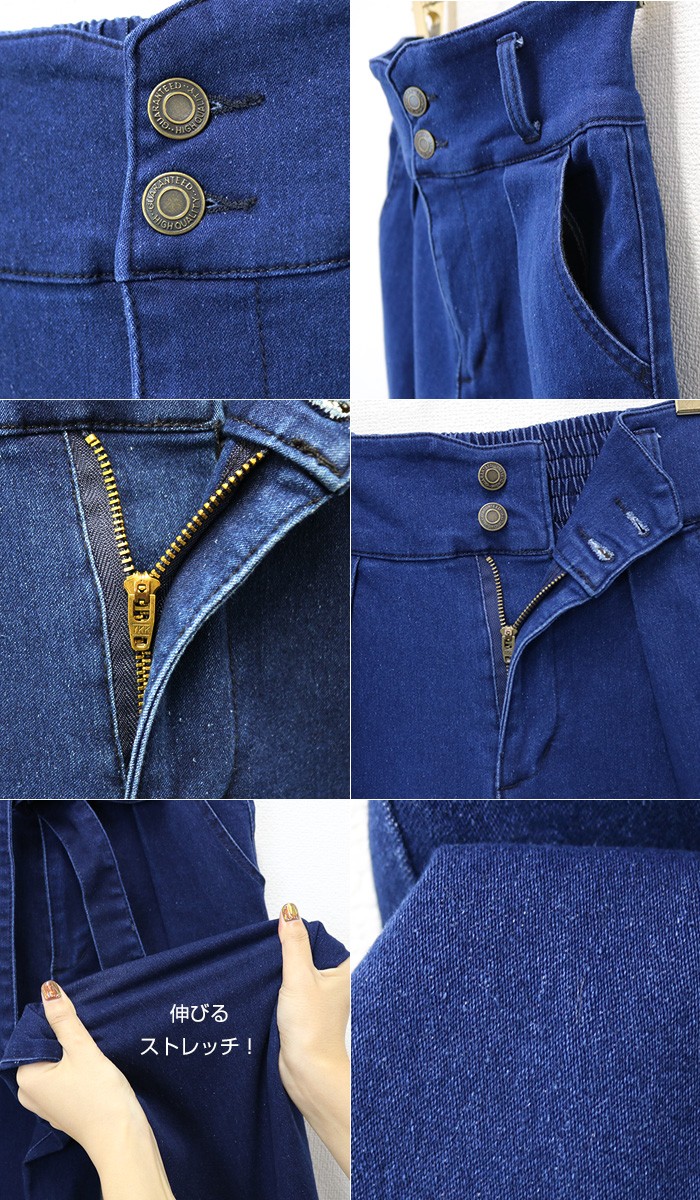 フロントはハイウエストのボタン仕様なのでぽっこりお腹も程よくカバーしてくれます♪