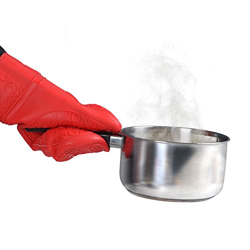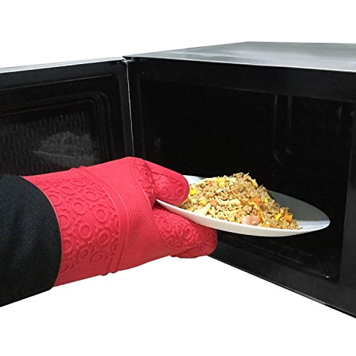 Best Oven Mitt Design on Amazon: Special tiled cuff makes it supper easy to take it on or off. Extra long size protect hands working over the grill or reaching into ovens. Flexible silicone shell with Non-Slip pattern creates supper good grid while holding hot plates and dishware.