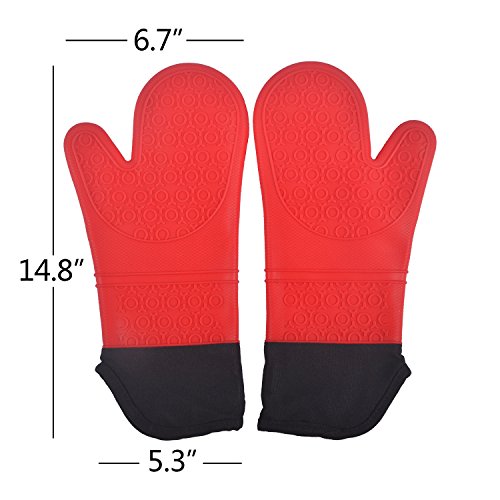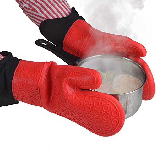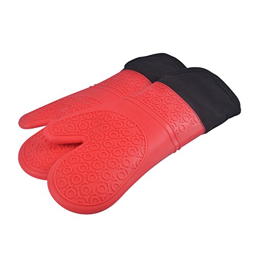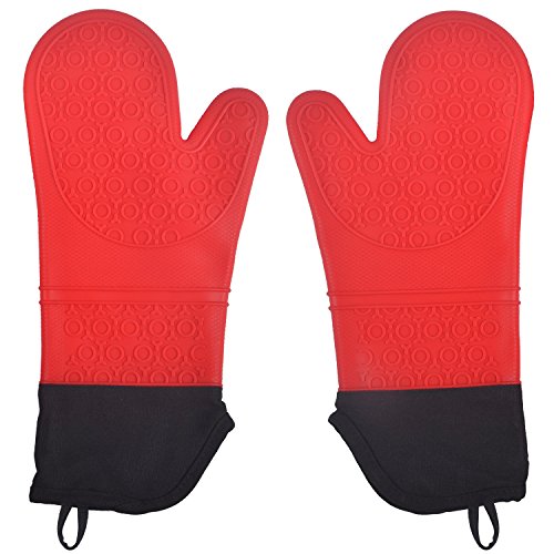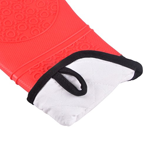 SAVORLIVING Extra Long Professional Silicone Oven Mitt, Oven Mitts with Quilted Cotton Liner, Ideal for Holiday Baking, Large, 1 Pair, Red