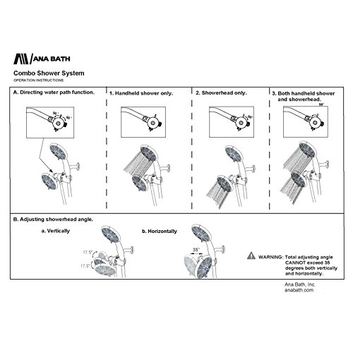3-Way Diverter: Turn water to Handheld Shower, Stationary Showerhead, or Both