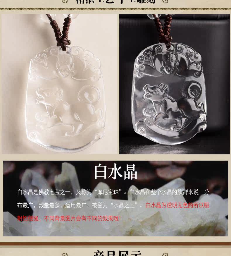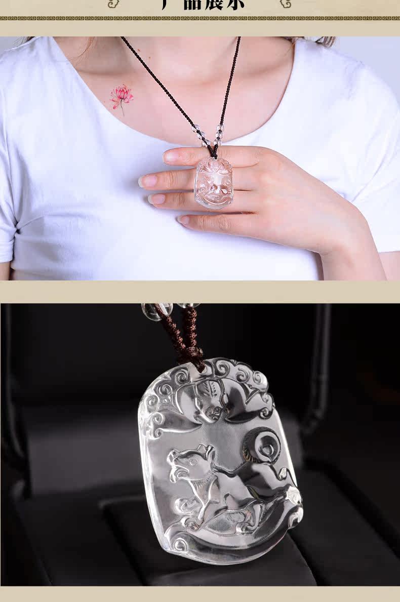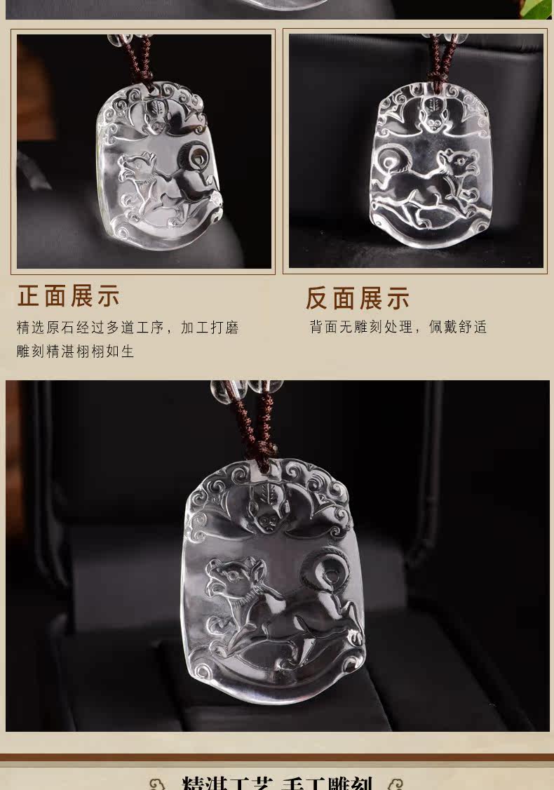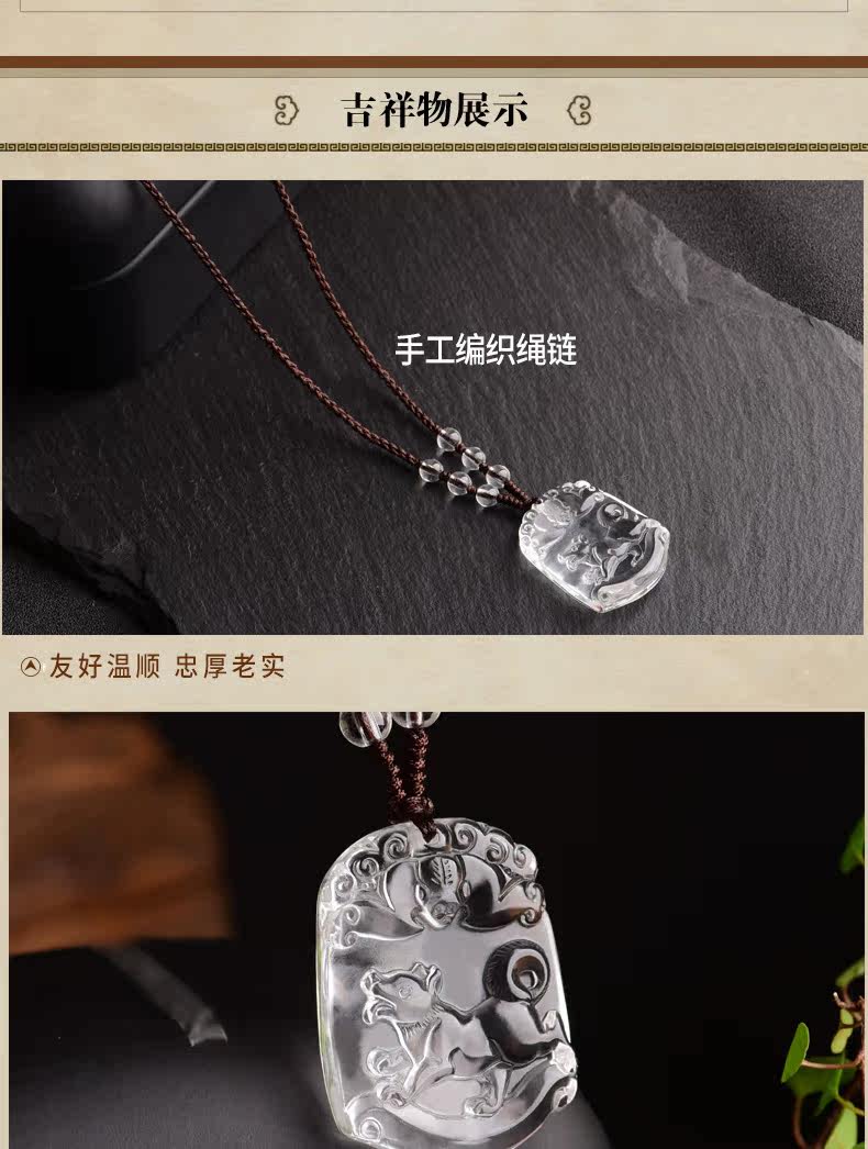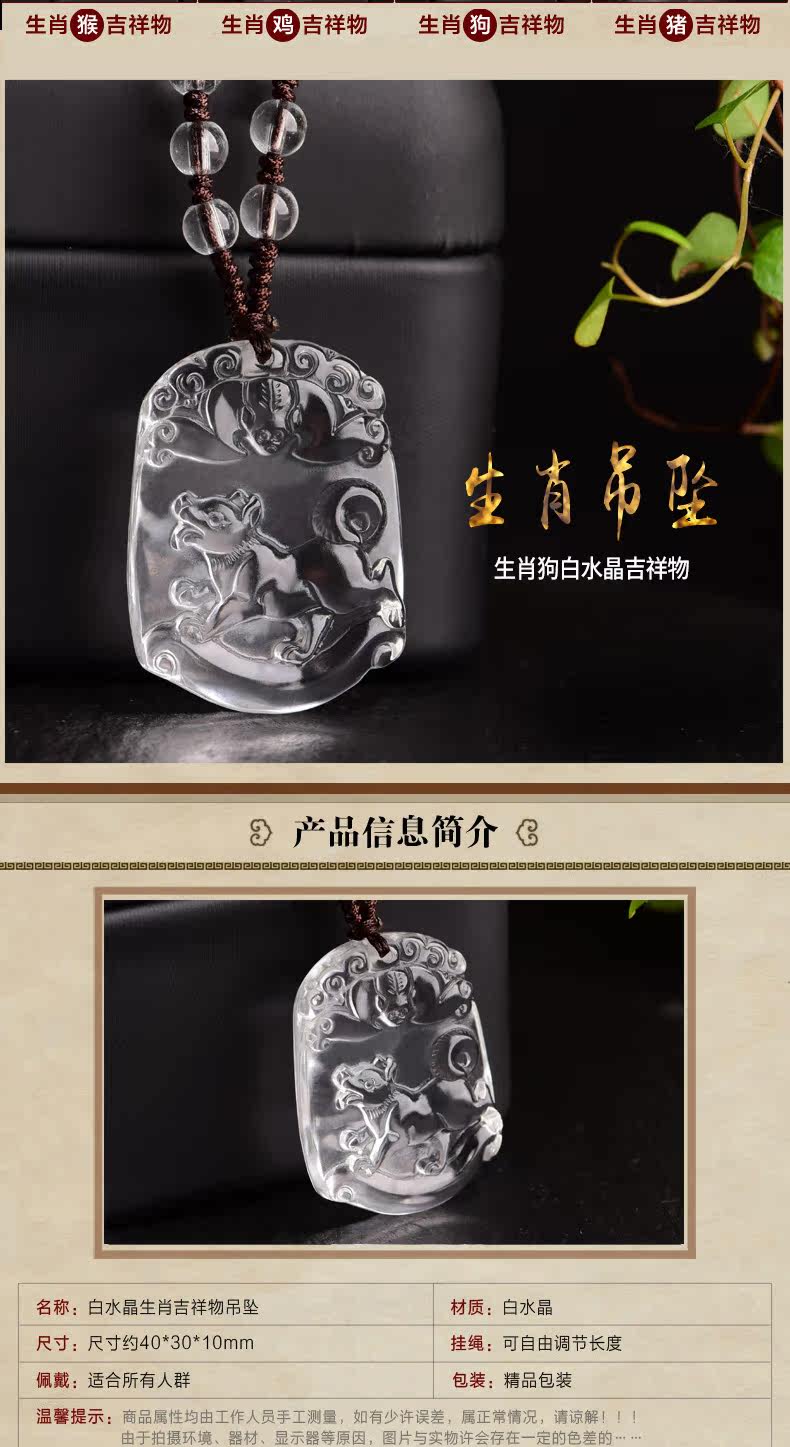 开光天然白水晶十二生肖吊坠属狗男女士款项链饰品礼物挂件