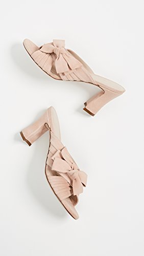 Product DescriptionSoft suede, a delicate pink color, and a sweet bow complete a totally feminine look in these chunky-heel Stuart Weitzman Bosun Mules.0