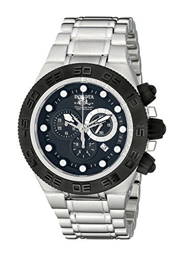 -. Binding : Watch -. Brand : Invicta -. Color : Silver/Steel -. Department : mens -. EAN : 0709251323424 -. Feature : Swiss quartz movement / Flame-fusion crystal; brushed and polished stainless steel case and bracelet / Chronograph functions with 60 second, 30 minute and 1/10 of a second subdials; date function / Black dial with silver tone hands, black and white hour markers; luminous; unidirectional black ion-plated stainless steel bezel; black crown and pushers / Water resistant to 330 feet (100 M): suitable for snorkeling, as well as swimming, but not diving -. Label : Invicta -. Manufacturer : Invicta -. Model : 1527 -. MPN : 1527 -. NumberOfItems : 1 -. PackageQuantity : 1 -. PartNumber : 1527 -. ProductGroup : Watch -. ProductTypeName : WATCH -. Publisher : Invicta -. ReleaseDate : 2011-11-04 -. Studio : Invicta -. Title : Invicta Men's 1527 Subaqua Sport Chronograph Black Dial Stainless Steel Watch -. UPC : 843836015271