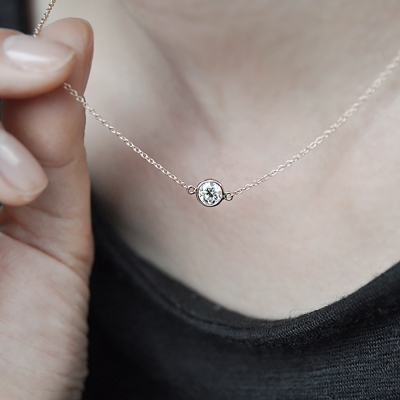 * * 깔끔하고 고급스러운 세팅이 돋보이는 목걸이 입니다. 5부 사이즈 (약 5mm) 의 스톤이 정 가운데 세팅되어, 착용시 우아한 느낌이 좋은 제품입니다. 스톤을 깔끔하게 금으로 쌓아 세팅한 것이 전부인 제품으로, 간단해 보이지만, 사실은 굉장히 어려운 세팅 입니다. 때문에, 스톤의 모든 부분이 그대로 노출되어 반짝임 또한 아주 우수한 제품입니다.