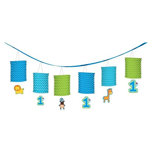 Studio : Amscan Publisher : Amscan Binding : Toy Product Description Add fun and unique decorations to your house on your little boy’s special day with the One Wild Boy 1st Birthday Paper Lantern Garland! With blue, turquoise and green paper lanterns attached to a blue ribbon, you can hang these stunning decorations anywhere you wish. Each lantern has a eye-catching zigzag pattern with your favourite jungle friends hanging down from them; welcome the loveable lion, swinging monkey and tall giraffe to the birthday celebrations, along with number ones to remind everyone of your little boy’s first milestone. Light up any room with the One Wild Boy 1st Birthday Paper Lantern Garland! 0