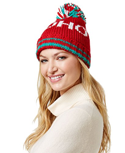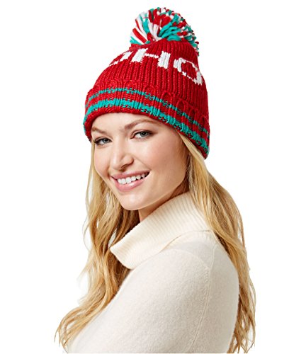 Steve Madden Women's 'Ho Ho' Holiday Pom-Pom Beanie Hat, Red