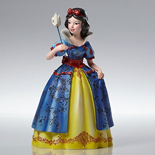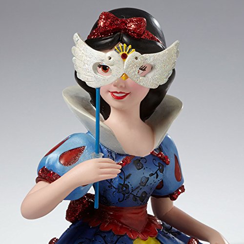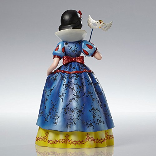 . Snow White with Masquerade Mask Figurine. Part of the Couture de Force collection. Made from stone resin. Approximately 7.4 inches tall (19cm). Includes original manufacturers box and packaging. Made by Enesco. Sweet and gentle Snow White carries a white dove ball mask in hand reflecting her innocent nature. Swivel back the mask to reveal lips as red as a rose, hair as black as ebony and skin as white as snow.. Ready to mingle and delight among villains, princes, and princesses at a Disney royal masquerade ball, the fairest one of all gleams in a costume embellished with incised and raised ornamental brocade patterns on her gown, short puff sleeves at the shoulder, and glittering red accents and bows.. Disney Couture de Force celebrates mystery and enchantment of a royal masquerade ball where villains and princesses mingle & delight. Snow White hides behind her white dove mask, reflecting the innocence and beauty that is underneath.. Officially licensed Disney productFeature