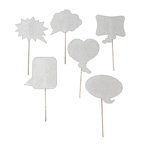 - Material: White Card Board, Each paper prop features a dry erase finish and comes on a 12" wooden stick.