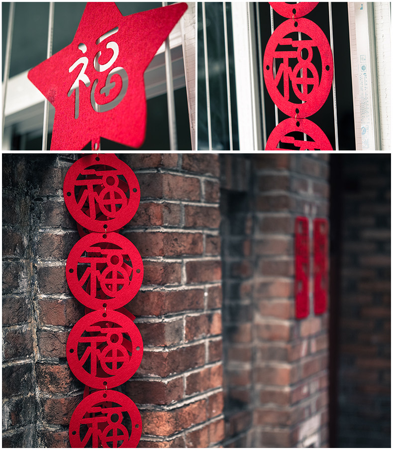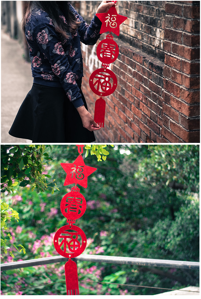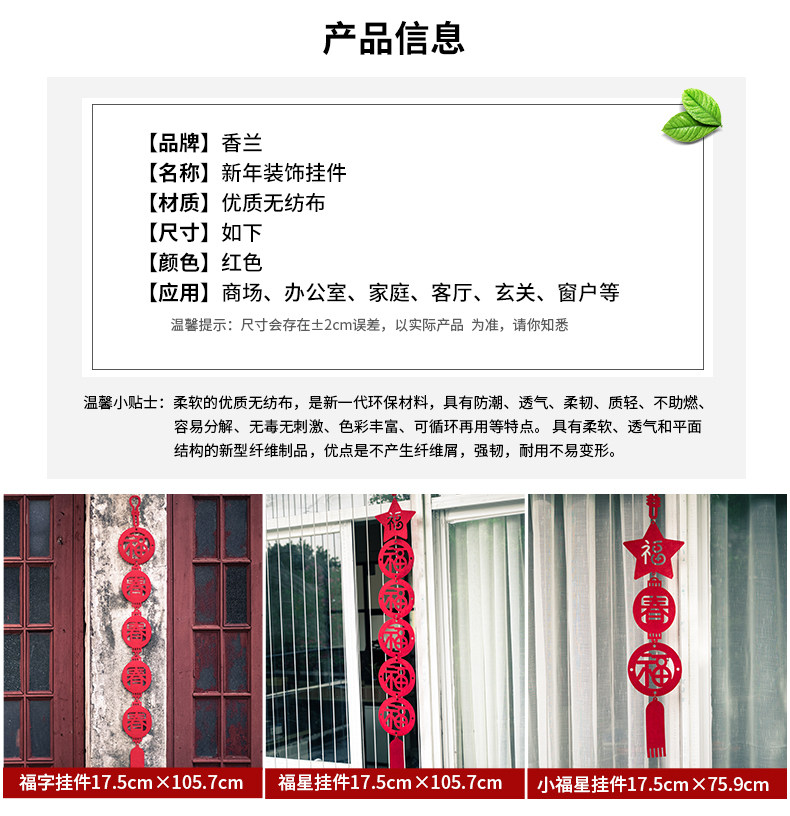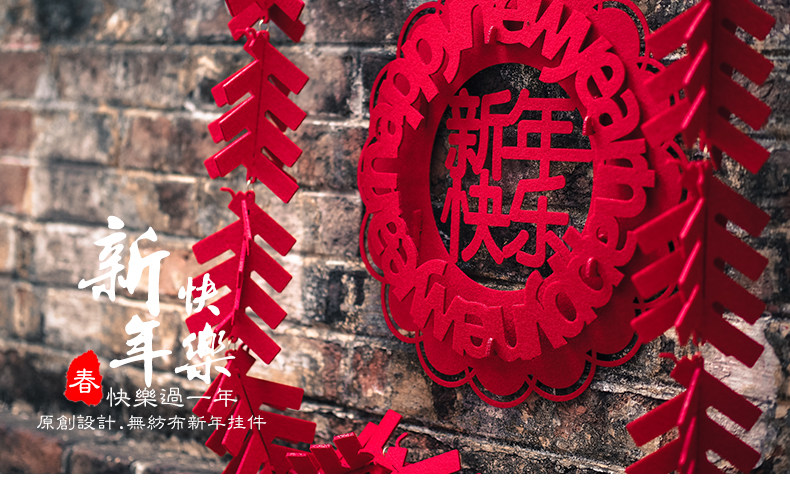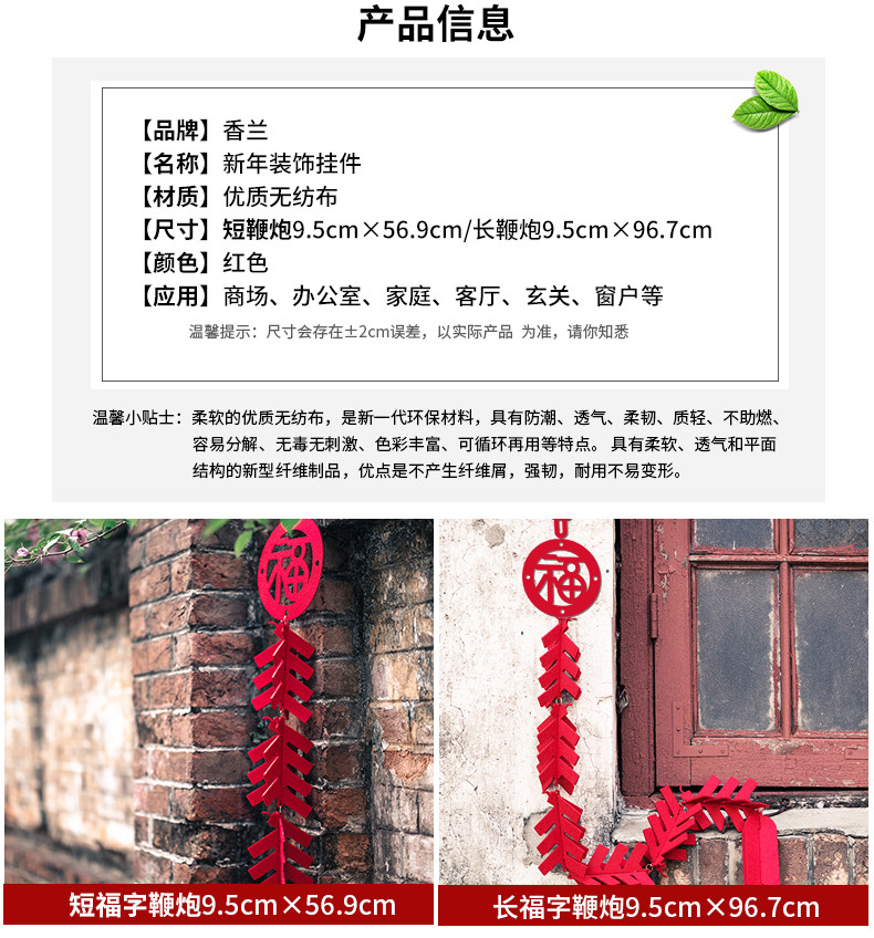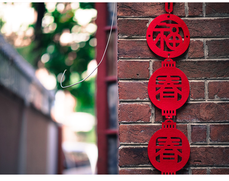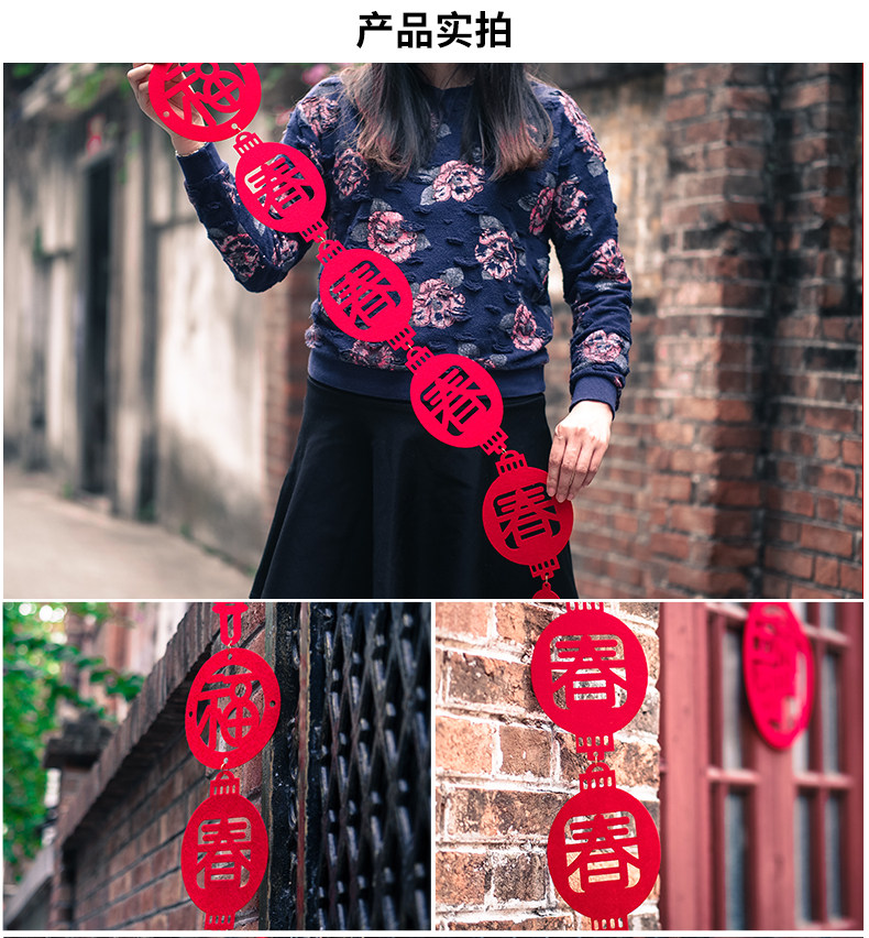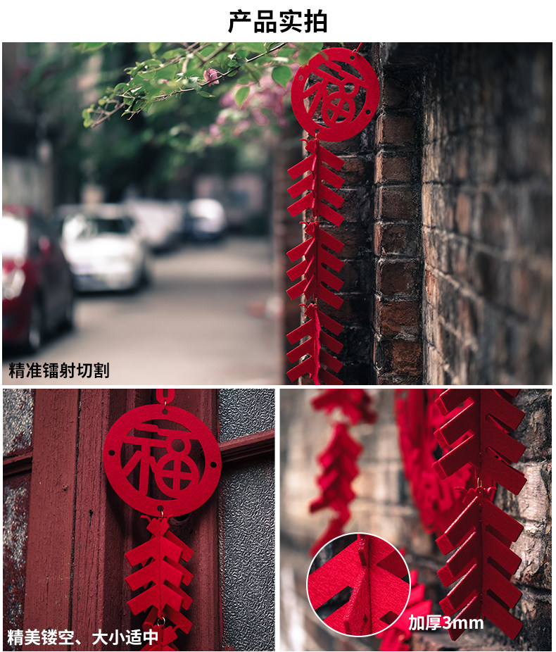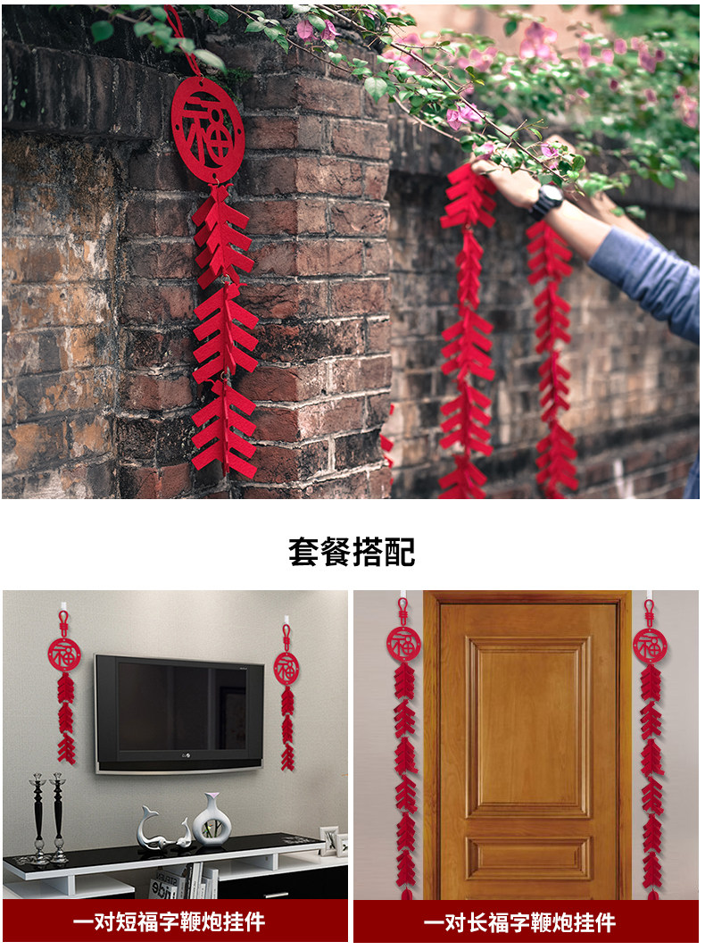 福星照月 春节装饰用品 新年无纺布福字鞭炮挂件 客厅办公室布置