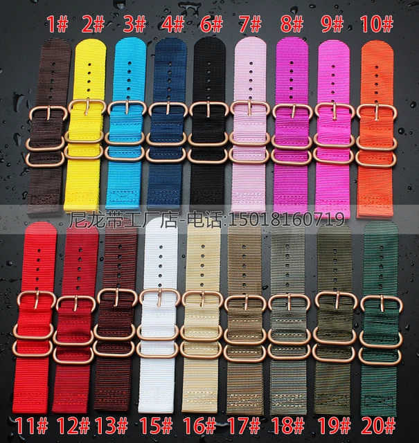 | [해외] 18 미리메터 20 미리메터 22 미리메터 24 미리메터 나일론 손목 시계 로즈 골드 버클. 방수 스트랩, 스포츠 손목 나토 시계 밴드 멀티 컬러 선택 |